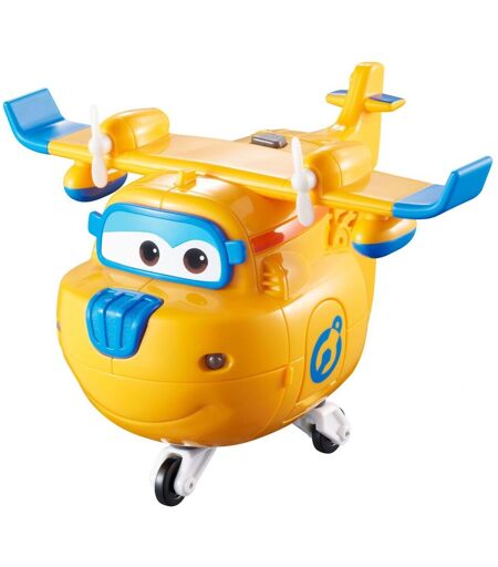 Amusez-vous à revivre toutes les aventures de la série animée Super Wings ! Ce véhicule représente Donnie. Il est transformable (comme dans le dessin animé !) et a des effets sonores et lumineux. Plein de sons et phrases sont à découvrir ! Donnie est un avion jaune et bleu dont la spécialité est de réparer divers objets en utilisant son kit d'outils. Ce coffret comprend 14 pièces pour transformer Donnie en avion ou en robot, selon la mission. La bouche et les yeux sont interchangeables. Nécessite des piles : 2 x AAA - 1.5V, non incluses. Hauteur du véhicule : 17 cm. Dimensions de la boîte : 33 x 14.5 x 19 cm. Dans la même collection, retrouvez Jett sur notre site et sous la référence Auldey-YW710310. Note : Le jouet parle en anglais uniquement. ...