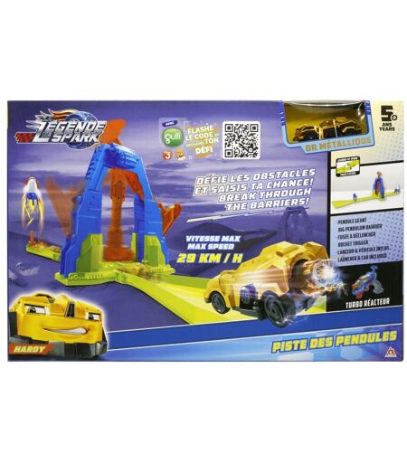 LA LÉGENDE DE SPARK ? Piste des Pendules +1 Lanceur Turbo Réacteur + Véhicule 29km/h Hardy ? Circuit Voiture Piste Pendule - 5 ans+ - Propulse Hardy a l'aide du lanceur Turbo Réacteur a la MEGA VITESSE de 29 km/h ! Compatible avec les lanceurs Turbo Réacteur et Évolution Turbo ... ...