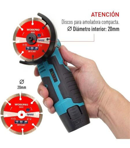 Le disque diamant segmenté WORKPRO Basic Ø110x20mm est idéal pour réaliser des coupes précises dans des matériaux tels que la pierre, le béton, la brique et le carrelage. Sa conception segmentée permet des performances optimales en coupe à sec et humide, étant compatible avec les meuleuses compactes et standards dotées d'un adaptateur pour disques de diamètre intérieur de 20 mm. Type : Disque diamant Caractéristiques : Segmenté de base Mesures : Ø 110 x 20 mm Idéal : Coupe de pierre, béton, brique, carrelage Coupe : À sec ou humide Dents : strong> Pressé à froid Matière : Corps en acier 65mn Le disque diamanté segmenté WORKPRO Basic Ø110x20mm est un outil conçu pour réaliser des coupes précises dans des matériaux tels que la pierre, le béton, la brique et le carrelage. Sa construction robuste et efficace permet des performances optimales dans les coupes sèches et humides, s'adaptant aux différents besoins de travail. Ce disque est idéal pour les meuleuses compactes et standards, à ...