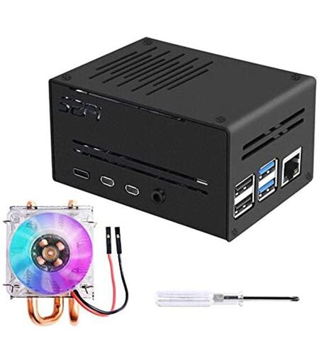 Pour Raspberry Pi Low-Profile CPU Cooler Kit pour Raspberry Pi 4 modèle B; Version noire.Caractéristiques du ventilateur: ventilateur LED de couleur avec changement de couleur automatique; Dissipateur thermique de style tour à pile unique; Alimentation cc 5V (peut être alimenté par le pour Raspberry Pi); Seul ventilateur.Caractéristiques du boîtier en métal: il offre non seulement une bonne protection à votre Raspberry Pi et offre également une excellente dissipation thermique. Seul étui.Tube en cuivre de 5mm; Super dissipation thermique; Plug and play; Puissance nominale 0.4W 5V, 0,08aCouleur: noirMatière: métalContenu de l'emballage:1 * coque en métal1 * refroidisseur de tour de glace1 * ensemble de vis1 * tournevisRemarque: la carte Raspberry Pi n'est pas incluseSeul le contenu de l'emballage ci-dessus, les autres produits ne sont pas inclus.Remarque: la prise de vue légère et les différents affichages peuvent rendre la couleur de l'article dans l'image un peu différente de la réalité. L'erreur de mesure autorisée est de +/- 1-3cm. ...