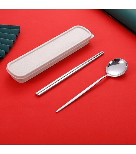 Ensemble De Couverts En Acier Inoxydable, Vaisselle, Fourchette Et Cuillère Portables, Avec Étui, Pour Voyage, Vaisselle De Table