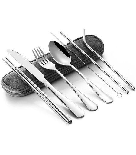 Service De Vaisselle De Voyage, Couverts Portables, Services De Dîner De Camping, Vaisselle En Acier Inoxydable, Arc-En-Ciel Avec Kit De Paille, Sac De Baguettes À Brosse