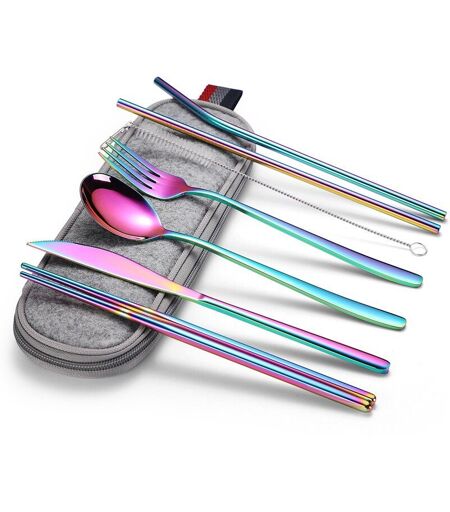 Couverts en acier inoxydable, vaisselle colorée, ensemble de vaisselle en paille, cuillère fourchette baguettes avec étui Portable en paille 8 pièces/ensemble1. Ensemble de couverts de voyage-y compris étui de transport de couverts de voyage, couteau à dîner, fourchette, cuillère, baguettes, brosse de nettoyage, paille.2. Sûr et de haute qualité: tous nos produits sont fabriqués en acier inoxydable de qualité alimentaire de haute qualité, durable, sain, adapté à un usage quotidien et peuvent être lavés au lave-vaisselle.3. Pratique à transporter: cette valise peut stabiliser l'équipement de voyage afin qu'il ne fasse pas de bruit pendant le voyage. La lame tranchante, la cuillère ronde et la fourchette super robuste vous offrent une expérience confortable.4. Respectueux de l'environnement et facile à nettoyer-dit qu'il ne jetera pas ou la vaisselle en plastique jetable! L'utilisation de cette vaisselle et de ces baguettes de voyage réutilisables est un moyen écologique. La doublure imperméable de l'ensemble de couverts de voyage est faite de papier d'aluminium, facile à nettoyer.5. L'ensemble de couverts en acier inoxydable convient au camping, aux voyages, au bureau, à l'école universitaire, au pique-nique, etc.Nom: ensemble de CouvertsMatériau: en acier inoxydableCouleur: couleurs de L'arc-En-CielContenu de l'emballage:1 x fourchette1 x cuillère1 x couteau de table1 paire x baguettes1 x paille droite1 x plier la paille1 x brosse de nettoyage1 x sac à couvertsSeul le contenu de l'emballage ci-dessus, les autres produits ne sont pas inclus.Remarque: la prise de vue légère et les différents affichages peuvent rendre la couleur de l'article dans l'image un peu différente de la réalité. L'erreur de mesure autorisée est de +/- 1-3cm. ...