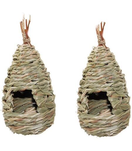 2 Paquets De Cabane À Oiseaux En Herbe, Maison À Oiseaux Suspendue, Nid En Fiber De Nid D'oiseau Tissé À La Main, Poche De Perche, Cachette Pour Oiseaux Loin Des Prédateurs