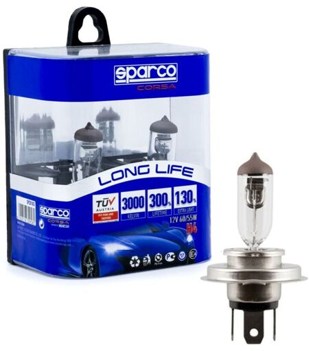 Sparco - Ampoules halogènes H4 12 v 3 000 k Jaune 60/55 w P43t, 2 pièces