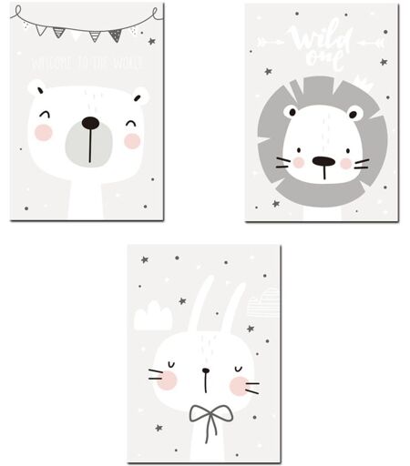 FVBJD 3 Tableau Bebe Garcon Posters Nordique Affiches Enfant Chambre Animaux Lion Ours Lapin Dessins Peinture sur Toile Decoration Murale Cadeaux (2130CM)