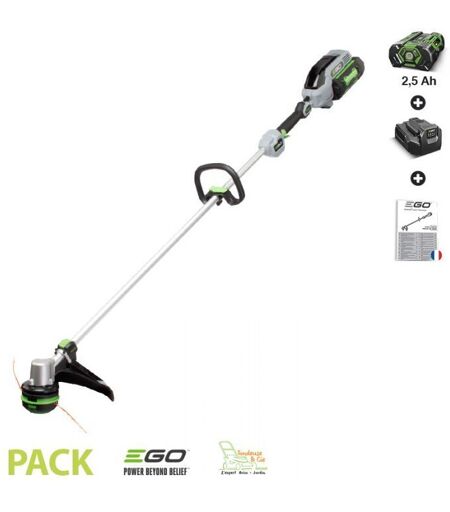 Coupe bordure sans fil avec tête de débroussaillage à rembobinage automatique Powerload Egopower ST1400E. Peut servir de dresse bordure. Moteur électrique sans balai avec 2 vitesses de rotation. Livré avec batterie 2,5Ah et chargeur CH2100E. Coupe 35 cm??????. Fil de débroussailleuse diamètre 2,4 mm. Peu de nuisance sonore, aucun entretien. Garantie 5 ans (3 ans pour la batterie). Ce coupe bordure sans fil ST1400E d'Egopower est équipé d'une tête de débroussailleuse préchargée en fil à tête Powerload qui rembobine le fil automatiquement lors de la recharge. Le jardinier placera simplement le fil dans la tête et sur simple pression sur un bouton, il rembobinera son fil débroussailleuse. Fini le démontage des têtes fil sur les débroussailleuses classiques et la perte de ressort ou autres pièces dans l'herbe haute. Cette nouvelle débroussailleuse électrique sans fil est dotée de la nouvelle génération de moteur sans balai qui transmet un maximum d'énergie à la tête de coupe et surtout gère les besoins en énergie selon les travaux de débroussaillage. L'autonomie est liée au choix de la batterie Egopower (non incluse). Autonomie de : 30 minutes avec la batterie Egopower+ de 2,5Ah, 60 minutes avec la batterie 5Ah 90 minutes avec la batterie 7,5 Ah 120 minutes avec la batterie 10 Ah Ce coupe bordure à batterie a les capacités d'un dresse bordure à moteur essence, mais aucune pollution lié aux échappement, et aucun problème d'entretien. Sa tête débroussailleuse Powerload s'équipe avec un double fil débroussailleuse de 2,4 mm fourni. Le diamètre de coupe est de 35 cm. Avec un tel équipement, vous pouvez entreprendre des travaux intenses dans les hautes herbes. Sa conception ergonomique facilite l'intensité du travail de désherbage. Il dispose d'une poignée Loop ajustable selon la position de travail. Le point fort de ce coupe bordure est son équilibre général, en effet Egopower a conçu le ST1400E pour un usage facile. Le moteur se trouve dans la tête de coupe et vient ainsi contrebalancer le poids de la batterie à l'arrière. Le mouvement de coupe naturel qui est de basculer le coupe bordure vers l'avant est intensifié et sans effort pour l'utilisateur. Le ST1400E bénéficie de la garantie 5 ans sur le coupe bordure. Informations SAV: Service Après Vente assuré par une Equipe interne à la société Tondeuse-et-compagnie dûment formée et agréée par le fabricant à l'intervention sur les produits de la marque. Montage: Notice de montage et d'assemblage disponible en langue française réalisée par notre équipe technique Informations complémentaires: Sans fil Batterie et chargeur: Batterie et chargeur compris Accessoires: Batterie et chargeur inclus Type de moteur: Sur batterie Alimentation: Electrique avec batterie Moteur: Sans balai - Batterie Lithium ion Marque et modèle moteur: Egopower Tension: 56 V Démarrage: Démarrage électrique Nombre de vitesses Avant: 2 Avancement du fil: Automatique Largeur de coupe: 35 cm Outils de coupe: Tête avancement automatique -... ...
