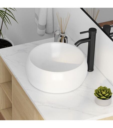 Eridanus - Vasque Poser Lavabo de salle de bain Céramique Rond Blanc - 39 x 39 x 16cm, ERI-VB-032