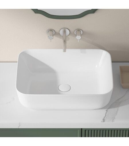 ERIDANUS Vasque à Poser Rectangulaire en Céramique Blanche - 50 x 39 x 14cm, ERI-VB-022N