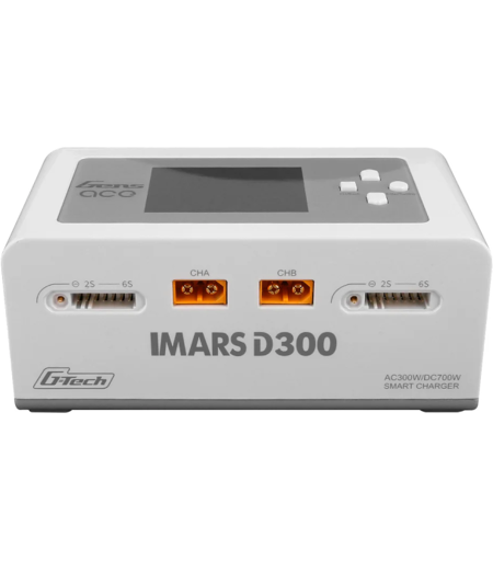 Chargeur Gens Ace iMars D300 G-Tech AC/DC Blanc, puissance de 300W/700W, idéal pour un chargement rapide et sécurisé des batteries RC en mode AC ou DC. ...