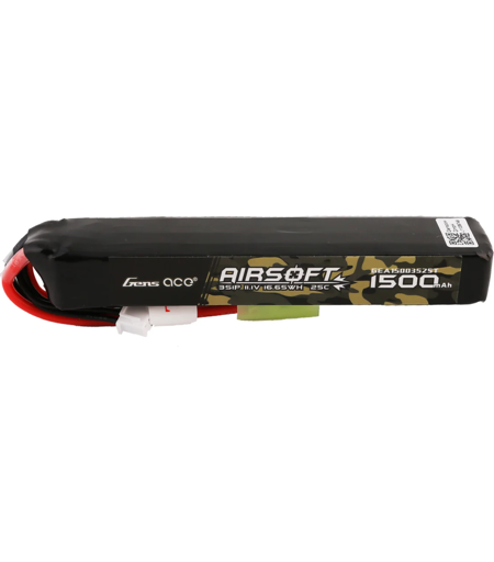 Batterie Lipo Airsoft Gens Ace 1500mAh 3S1P 11.1V avec Mini Tamiya, idéale pour AEG nécessitant plus de puissance. ...