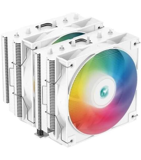 Ventirad CPU DEEPCOOL Gammaxx AG620 ARGB (Blanc) Le ventirad CPU DEEPCOOL Gammaxx AG620 ARGB en blanc est conçu pour offrir une excellente compatibilité et performance. Compatibilité des sockets Ce modèle est compatible avec les sockets suivants : Intel : LGA 2066, LGA 2011, LGA 1700, LGA 1200, LGA 115x AMD : AM5, AM4 Caractéristiques des ventilateurs Équipé de deux ventilateurs de 120 mm PWM ARGB, ce ventirad garantit un débit d'air optimal de 67.88 CFM. Sa couleur blanche apporte une touche d'élégance à votre configuration. Dimensions et installation Avec une hauteur de 157 mm et une largeur de 129 mm, ce ventirad est non seulement facile à installer, mais il assure également une dissipation thermique efficace. ...