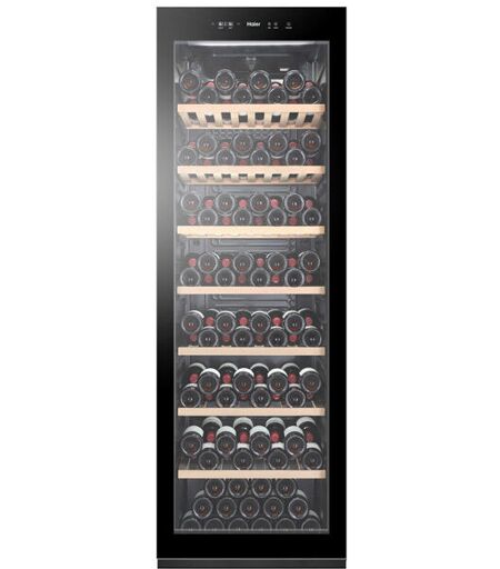 Description générale Cave à vin de vieillissement HAIER HWS188GAE, conçue pour accueillir jusqu'à 188 bouteilles. Ce modèle mono zone est idéal pour conserver vos vins dans des conditions optimales. Avec un design élégant en noir, il s'intègre parfaitement dans votre intérieur. Spécifications techniques Classe énergétique : G Capacité : 188 bouteilles Dimensions : H185 x L59,5 x P63,5 cm Niveau sonore : 38 dB Consommation annuelle d'énergie : 170 kWh Poids : 92 kg Compatibilité et accessoires Nombre de clayettes : 7 étagères en bois Protection contre les rayons UV Portes réversibles Installation Type : Pose libre Placement : Autoportante Utilisation Écran intégré avec contrôle tactile Lumière intérieure pour une visibilité optimale Conservation idéale des bouteilles grâce à la température contrôlée ...