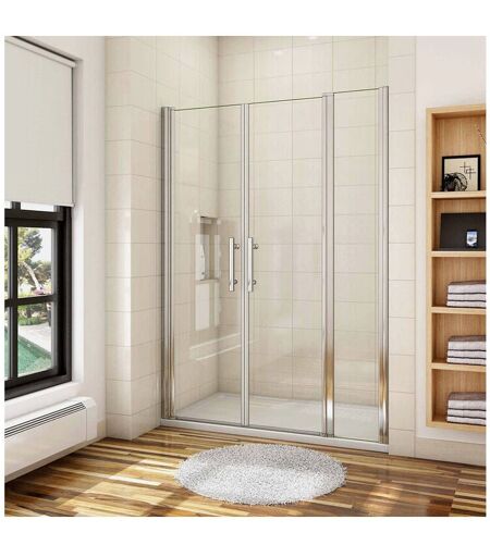 AICA SANITAIRE Aica porte de douche battante 140x187cm porte battante avec 1 élément fixe en 6mm verre anticalcaire