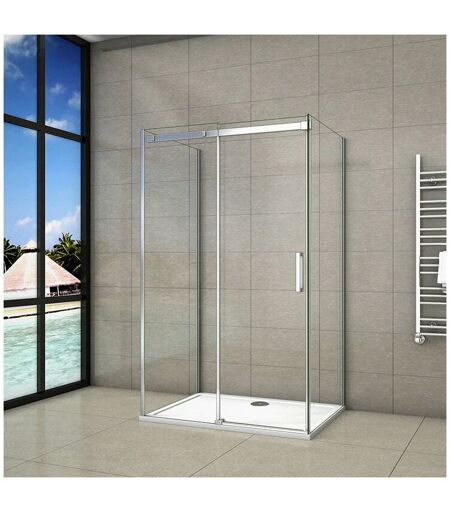 AICA SANITAIRE Cabine de douche 150x90x90x195cm forme en u porte de douche coulissante et 2 parois en 8mm verre anticalcaire