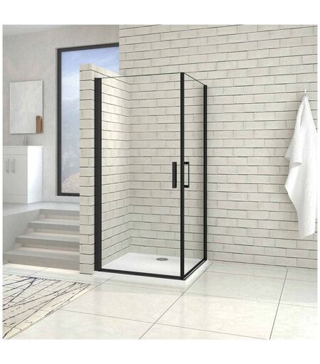 Aica Sanitaire - aica cabine de douche noire 100x100cm porte de douche pivotante noir en 8mm verre anticalcaire hauteur:200cm
