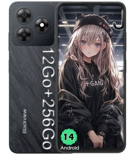 Blackview WAVE 8 Téléphone Portable 6.56" 12Go+256Go/2 To 13MP+8MP 5000mAh Smartphone 4G Android 14 Dual SIM - Noir
