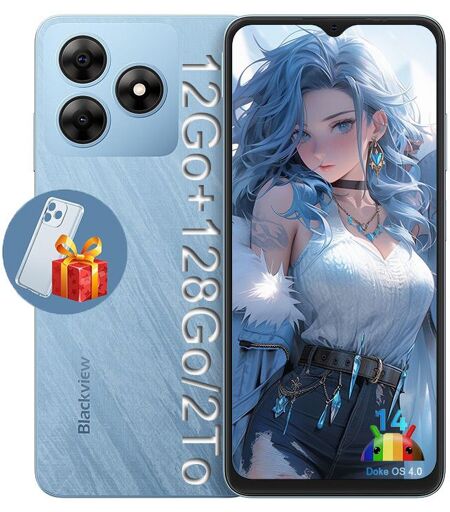 Blackview Téléphone Portable,Smartphone Débloqué Écran Grande 6.56" HD+ & Apparence exquise légère & étui de protection transparent: Le WAVE 8 téléphones portables débloqués est un téléphone portable au design remarquable. Avec un profil mince de seulement 8,75mm et un poids léger de 192g, il allie élégance et portabilité. Son écran goutte d'eau de 6,56 pouces et un taux d'occupation de l'écran de 81% offrent une expérience immersive. Avec une luminosité de 450 nits, la clarté est assurée même en plein jour. Son taux de rafraîchissement de 90Hz garantit une fluidité exceptionnelle. C'est un smartphone économique qui est élégant et puissant, et c'est pour tout le monde. Doke OS 4.0 Based on Android 14¿ Wave8 telephone portable rend la sécurité et la confidentialité améliorées, plus sûres, plus fluides et plus personnelles. Les options de personnalisation vous permettent de personnaliser facilement votre appareil, tandis que les mises à niveau pratiques accélèrent les tâches quotidiennes. Faites l'expérience d'un système Android rationalisé et efficace spécialement conçu pour les appareils d'entrée de gamme. Découvrez de nouvelles fonctionnalités telles que EasyShare App, Focus Mode, Battery Preserved et Atomized Memory 2.0. Octa core & 12Go RAM + 128 Go ROM/TF 2 To¿ Le WAVE 8 téléphones portables est équipé d'un processeur Octa-core T606 efficace, offrant des performances fluides pour les tâches quotidiennes. Que ce soit pour basculer entre les applications, naviguer ou diffuser des médias, sa puissante architecture garantit une expérience sans faille. WAVE 8 Smartphone dispose de 12Go de RAM au total, comprenant 4Go de mémoire physique et 8Go de mémoire virtuelle. Vous pouvez effectuer plusieurs tâches en même temps sans problème. Avec 128Go d'espace de stockage interne et une prise en charge jusqu'à 2To via une carte TF, vous aurez suffisamment d'espace pour toutes vos applications, vidéos, photos, etc. Caméra 13MP+8MP & Face ID & Fingerprint unlock¿ Le WAVE 8 téléphone économique est équipé d'une caméra arrière de 13MP et d'une caméra frontale de 8MP. Vous pouvez prendre des photos magnifiques, créer des vidéos dynamiques et capturer des mouvements avec une incroyable netteté et des couleurs vives. Qu'il s'agisse d'un paysage sophistiqué ou d'un selfie, vous photographiez facilement avec une couleur, un contraste et une luminosité optimisés, Rendant chaque photo meilleure. De plus, les différents modes de prise de vue s'adaptent à différentes situations. Le déverrouillage par reconnaissance faciale ou empreinte digitale est pratique et rapide. Batterie 5000mAh & 10W Charge Rapide¿ Équipé d'une batterie de 5000 mAh, le WAVE 8 Smartphones offre une autonomie exceptionnelle. Le mode économie d'énergie intelligent s'active automatiquement à 10% et jusqu'à 75%, assurant une gestion intelligente de l'alimentation tout au long de la journée. Le mode ultra-économie réduit encore plus la consommation d'énergie, garantissant les fonctions essentielles en... ...