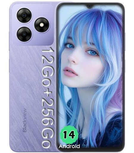Blackview WAVE 8 Téléphone Portable 6.56" 12Go+256Go/2 To 13MP+8MP 5000mAh Smartphone 4G Android 14 Dual SIM - Violet