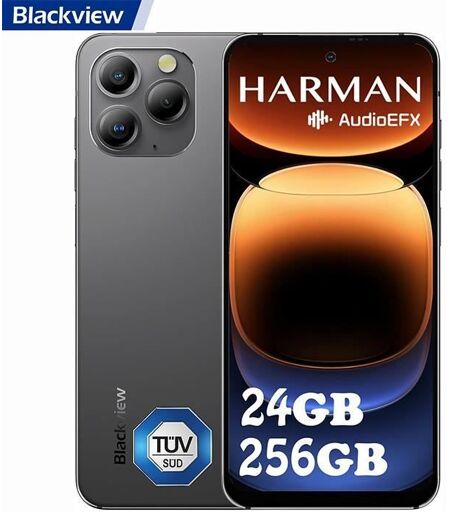 Blackview A96 Téléphone Portable 6,5" 2.4K 120Hz 24Go+256Go MTK Helio G99 Android 13 48MP Dual SIM,Face ID,NFC,Certifié TÜV - Noir