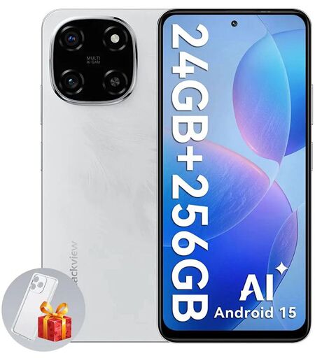 Blackview COLOR 6 Téléphone Portable Débloqué 24Go+256Go/2To 6.67" 50MP+13MP 5000mAh Android 15,Dual SIM 4G,GPS - Blanc