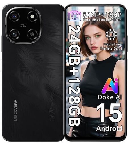 Blackview COLOR 6 Téléphone Portable Débloqué 24Go+128Go/2To 6.67" 50MP+13MP 5000mAh Android 15,Dual SIM 4G,GPS - Noir