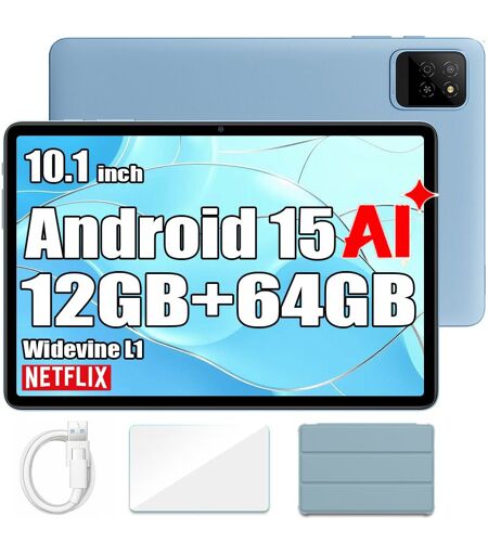 Blackview Tablette Tactile Oscal Pad 30 Wifi Doke AI 10,1"" 60Hz,1080p FHD 12Go 64Go-SD 2To Android 15, 6600 mAh Face ID, Widevine L1 - Bleu
