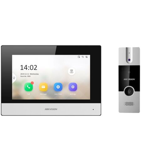 Hikvision Kit de porte d'entrée vidéo technologie 4 fils Kit composé de : DS-KB2411T-IM panneau extérieur desystème de portier vidéo aveccaméra de 2 Mpx HD et DS-KH6320-WTDE1 WiFi indoor monitor conwith screen TFT LCD de 7" Monitoring a via de iVMS-4200 software or app mobile Hik-Connect CARACTÉRISTIQUES TECHNIQUES : DS-KH6320-WTDE1 : Système d'exploitation LinuxType de écran TFT de 7" tactile a couleur a Résolution of écran 1024 x 600 Entrées 2 x entrées d'alarme configurables de, 1 x RS485, 1 x 4 fils Sorties 2 x sorties de relais, 1 x 4 fils Audio bidirectionnel withintégré microphone et haut-parleur Réduction et annulation du bruit de de eco Mémoire Emplacement pour carte Micro SD (jusqu'à 128 GB) Connexion4-fil / Ethernet 10/100 BaseT / RTSP / SIP 2.0 Protocol / WiFi 802.11 b/g/n (uniquement pour a app a connexion via de P2P) Accès à distance iVMS-4200App logiciel mobile Hik-Connect Alimentation DC 12V / 500 mA max. / IEEE802.3af Température de fonctionnement -10º C ~ +55º C ...