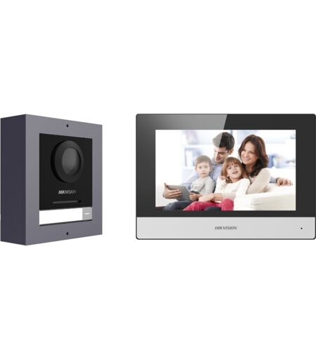 Hikvision DS‑KIS602(B) – Kit d&39interphone vidéo IP 2 MP avec écran tactile 7 pouces, PoE