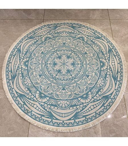 Bearsu - Tapis rond en coton tissé bleu 120cm Tapis de style mandala à franges Tapis lavable d'intérieur pour salon chambre salle de jeux