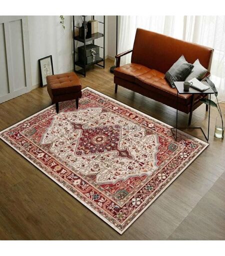 Lling - Tapis d'Entrée de Style Ethnique Persan Rétro Européen Rouge Antidérapant pour Chambre Salon Chevet-L 80x120cm