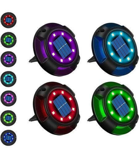 LUCKY-88 Solaire Extérieur 12 led 7 Couleurs Lampe Solaire Jardin Spot Encastrable avec Grand Panneau Solaire Étanche IP65 Lampe Solaire au sol (4PCS)