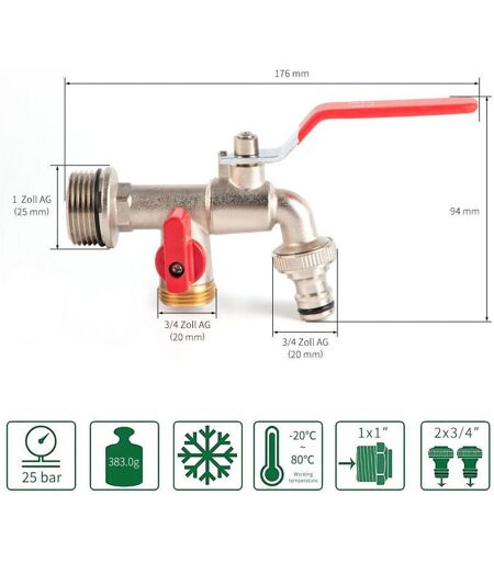 BARES Robinet double de jardin, robinet en laiton, robinet double bsp 3/4 pouces de haute qualité
