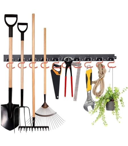 Support mural pour outils de jardin, MOHOO 64 pouces Organisateur d'outils de jardin à suspendre Système de stockage réglable Garages avec 4 rails 16