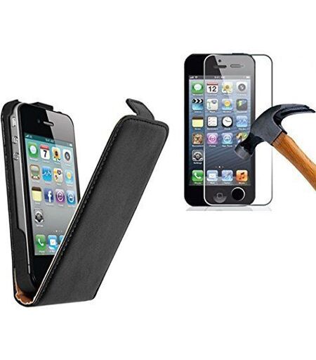 Hq-Cloud Etui Housse Vertical Cuir Pour Apple Iphone 4 / 4g / 4s - Noir + 1 Film De Protection Ecran En Verre Trempe