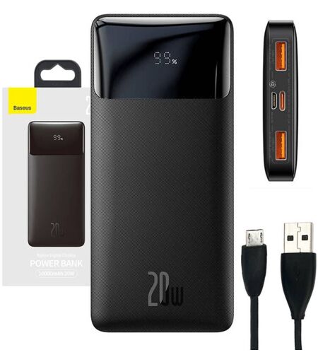 Basetech Batterie externe Baseus Bipow 10 000 mAh, 2 ports USB, USB-C, 20 W, noir