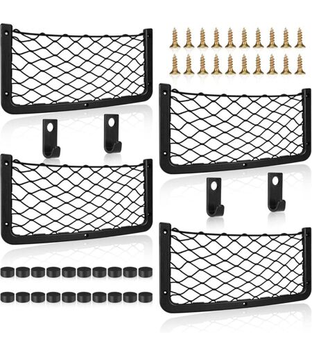 Ce que vous pouvez obtenir: vous recevrez 4 sacs de rangement en filet pour voiture avec 20 vis, adaptés à la plupart des voitures, et des quantités suffisantes peuvent répondre à vos besoins d'utilisation quotidienne et de remplacement, ou vous pouvez également les partager avec vos amis proches ; Ils peuvent vous apporter plus de commodité Matériau fiable: ces porte-sacs en filet pour voiture sont fabriqués en polyester et nylon de haute qualité, robustes et durables, difficiles à fendre et à décolorer, résistants aux déchirures, ce qui peut vous offrir une longue durée de vie. Ces réseaux de stockage avec une bonne flexibilité peuvent accueillir des objets volumineux Facile à utiliser: ces sacs en filet pour voiture sont très faciles à utiliser, il vous suffit d'utiliser un tournevis pour fixer le sac en filet dans la bonne position, ce qui est très pratique et peut vous faire gagner du temps et des efforts, vous pouvez fixer le filet de rangement à les vis sur votre voiture, ...