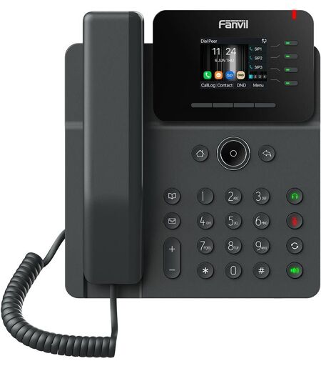 Fanvil V61G. Type de produit: Téléphone IP, Couleur du produit: Noir, Type de combiné: Combiné filaire. Modes DTMF (Dual-Tone Multi-Frequency): Info SIP. Quantité de lignes: 4 lignes, Capacité du répertoire: 1000 entrées. Écran: LCD, Taille de l'écran: 6,1 cm (2.4"), Résolution de l'écran: 320 x 240 pixels. Fréquence du microphone: 0 - 70 Hz, Codecs vocaux: G.722, AGC, G.729A, G.729B, PLC, G.711, G.711a, VAD, G.726, G.711u, iLBC ...