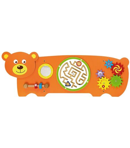 Panneau d'activités mural Ours pour proposer aux enfants un apprentissage interdisciplinaire. Ce jouet d'activités mural en bois propose différentes activités de motricité fine et d'éveil aux enfants, en les encourageant à jouer ensemble ou individuellement : des engrenages mobiles, des formes à visser et dévisser, un labyrinthe et un miroir. Avec s ...