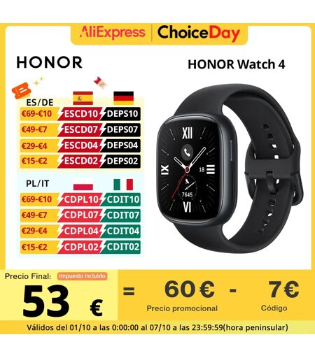 Global Version HONOR Watch 4 Smart Watch 5ATM Moniteur d'oxygène sanguin BT5.2 GPS Bluetooth 5.2 Batterie longue durée jusqu'à 14 jours