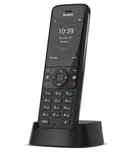 Yealink W78H. Couleur du produit: Noir, Type d'écran: TFT, Taille de l'écran: 6,1 cm (2.4"). Temps de communication: 21 h, Autonomie en veille: 166 h. Poids: 980 g, Largeur: 49,5 mm, Profondeur: 21 mm. Largeur du casier principal (externe): 443 mm, Longueur du casier principal (externe): 198 mm, Hauteur du casier principal (externe): 473 mm ...