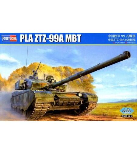 Type 99 or ZTZ-99 is a Chinese third generation main battle tank (MBT). Peoples Liberation Army Ground Force (PLAGF) service in 2001. Kit has single piece lower hull, detailed exterior with crisp raised and engraved features, separate turret, hinged hatches, optional antennas, choice of headlights, trenching device, detailed suspension (road wheels, drive sprockets, idler wheels and individual link track), on-vehicle equipment, 2-piece main gun barrel, machine gun and ammo box, gun mounted protection system, laser dizzier system, grenade launchers, side skirts with detail, cylindrical fuel drums, clear accents (vision ports and lights), photoetch (grilles, antenna, brackets and other accents). Decals and 5-view painting guide for a single tank. ...