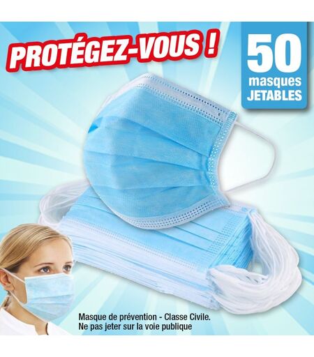Masques de protection faciale - boite de 50 pièces pour vous protéger au quotidien. Boîte de 50 masques de protection faciale (95%, Classe Civile). Spécifications : Structure de la couche intérieure en tissu non tissé, Couche extérieure en tissu non tissé. Couche intermédiaire (= couche de filtre d'isolement) : 95% de fibre de polypropylène ultra-fine + couche de matériau soufflé par fusion. Testés conformes par un laboratoire Allemand dans le cadre de la réglementation spéciale relative au Corona virus. Conforme à la norme EN 14683 Type II R, le masque chirurgical vous offrira protection et confort. ...