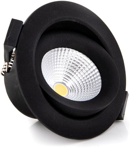 Petit downlight LED universel pour le commerce et l'architecture. Montage direct dans la couche d'isolation jusqu'à la barrière contre l'humidité. Aucun boîtier d'encastrement nécessaire, convient à plusieurs découpes de plafond de 68 à 83 mm. Boîtier en aluminium moulé sous pression. Réflecteur multi-miroirs hautement efficace, verre de sécurité intégré. Plage de rotation 360°. Plage d'inclinaison 30°. Tolérance de couleur < 3 SDCM. Stabilité de la couleur après 50 000 h: 4 SDCM. Maintien du flux lumineux après 50 000 h: L80/B10. Ballast séparé, gradable par coupure de phase, avec connecteur rapide. Garantie 5 ans. Caractéristiques , Convient pour un montage en surface, Non, Convient pour un montage encastré, Oui, Convient pour un montage mural, Non, Convient pour un montage suspendu, Non, Convient pour un montage au plafond, Oui, Convient pour un montage transversal, Non, Convient pour un montage sur pied ou au sol, Non, Convient pour un montage sur rail léger, Non, Convient pour montage avec colliers, Non, Convient pour les systèmes de câbles basse tension, Non, Réglage, Rotation et pivotement, Avec capteur de mouvement, Non, Avec capteur de lumière, Non, Type de lampe, LED non remplaçable, Avec source lumineuse, Oui, Convient pour plusieurs lampes, 1, Support de lampe, Aucun, Boîtier en matériau, Aluminium, Protection des surfaces, Revêtement en poudre, Boîtier coloré, Noir, Couverture du matériau, Plastique, transparent, Surface brossée, Non, Type de tension, Climatisation, Tension nominale, 220 - 240 V, Type de dispositif de commande, Dispositif de commande à LED commandé par tension, Appareillage de commande inclus, Oui, Gradation en fonction du dispositif de commande, Oui, Gradation 0-10 V, Non, Gradation 1-10 V, Non, Gradation DALI, Non, Gradation DMX, Non, Gradation DSI, Non, Potentiomètre de gradation (intégré), Non, Atténuation GPRS, Non, Commutateur de gradation, Non, Système exclusif du fabricant pour la gradation, Non, Modulation de la tension secteur pour la gradation, Non, Coupure de phase de gradation, Oui, Coupure de phase avec gradation, Non, Gradable programmable, Non, Gradation RF, Non, Réduction de la sinusoïde de gradation, Non, Atténuation tactile et atténuation, Non, Gradation Zigbee, Non, Gradation avec bouton-poussoir, Non, Pas de fonction dimmable, Non, Réflecteur, Très brillant, Distributeur de lumière, Réflecteur, Partage de la lumière, Symétrique, Angle du faisceau, Faisceau moyen 21-40°, Prise de lumière, Direct, Classe d'efficacité énergétique de la lampe intégrée, A++, A+, A (LED), Durée de vie nominale L80/B10 à 25 °C, 50 000 h, Indice de protection (IP), IP44, Classe de protection, II, Température ambiante nominale selon IEC62722-2-1, - 10 à 45 °C, Puissance maximale du système, 8 W, Couleur de la lumière, Blanc, Température de couleur, 3000 - 3000 K, Indice de rendu des couleurs CRI, 90-100, Flux lumineux, 560 - 560 lm, Facteur de puissance, 0,9, Diamètre extérieur, 90 mm, Hauteur/profondeur intégrée, 55 mm,... ...