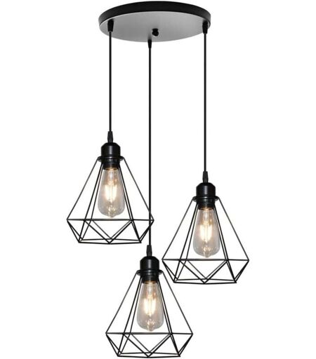 STOEX Lustre Suspension Cage en forme Diamant Lampe Plafonnier Corde Ajustable Luminaire pour Cuisine Couloir Bar Chambre Noir