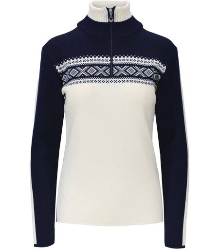 Dale of Norway - Pull à col zippé en laine de mérinos - Dystingen Sweater Off White/Navy/Off White pour Femme en Laine - Taille M - Blanc