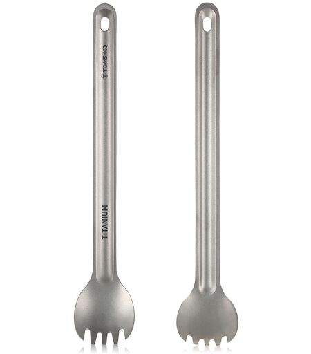 Tomshoo Titane Longue PoignéE Spork ExtéRieur Portable Finition Mate DîNer Spork Couverts Camping Sac à Dos Pique-Nique