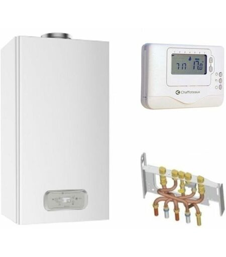 Chaffoteaux - Chaudière Gaz BasNox Inoa Nox 25 kW / Cheminée Complète (Douilles + Dosseret) avec Thermostat Filaire