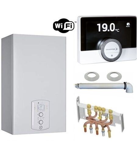 Chaffoteaux - Chaudière Gaz Condensation Urbia Green 25 kW Complète (Ventouse + Douilles + Dosseret) avec Thermostat Connecté