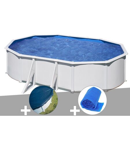 Gre Kit piscine acier blanc Gré Atlantis ovale 5,27 x 3,27 x 1,32 m + Bâche hiver + Bâche à bulles